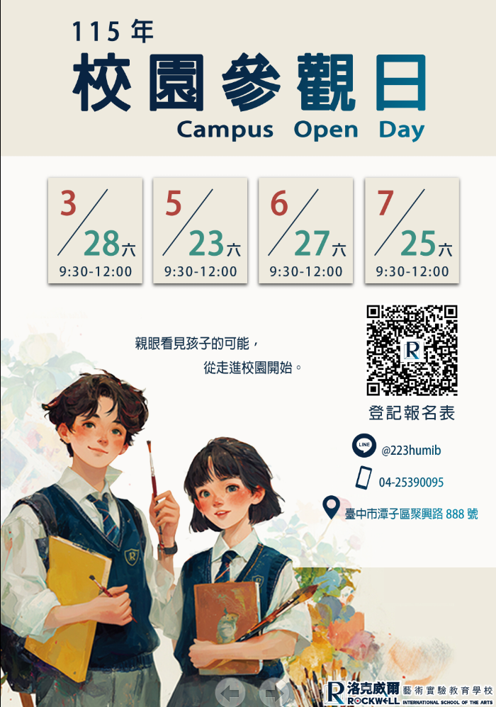 | 公告主旨 | 轉知臺中市私立洛克威爾藝術實驗教育學校「115學年度入學說明會」活動資訊1份 |
