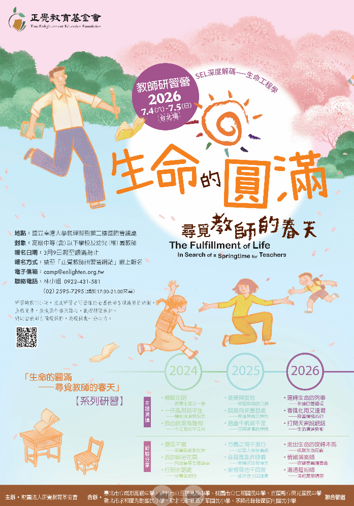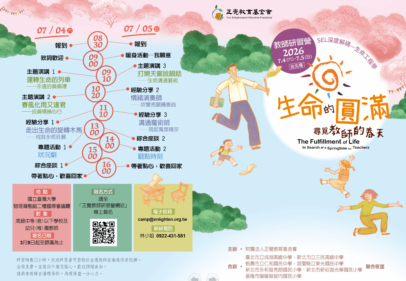 | 公告主旨 | 轉知財團法人正覺教育基金會辦理生命教育教師研習活動「生命的圓滿–尋覓 教師的春天」 |